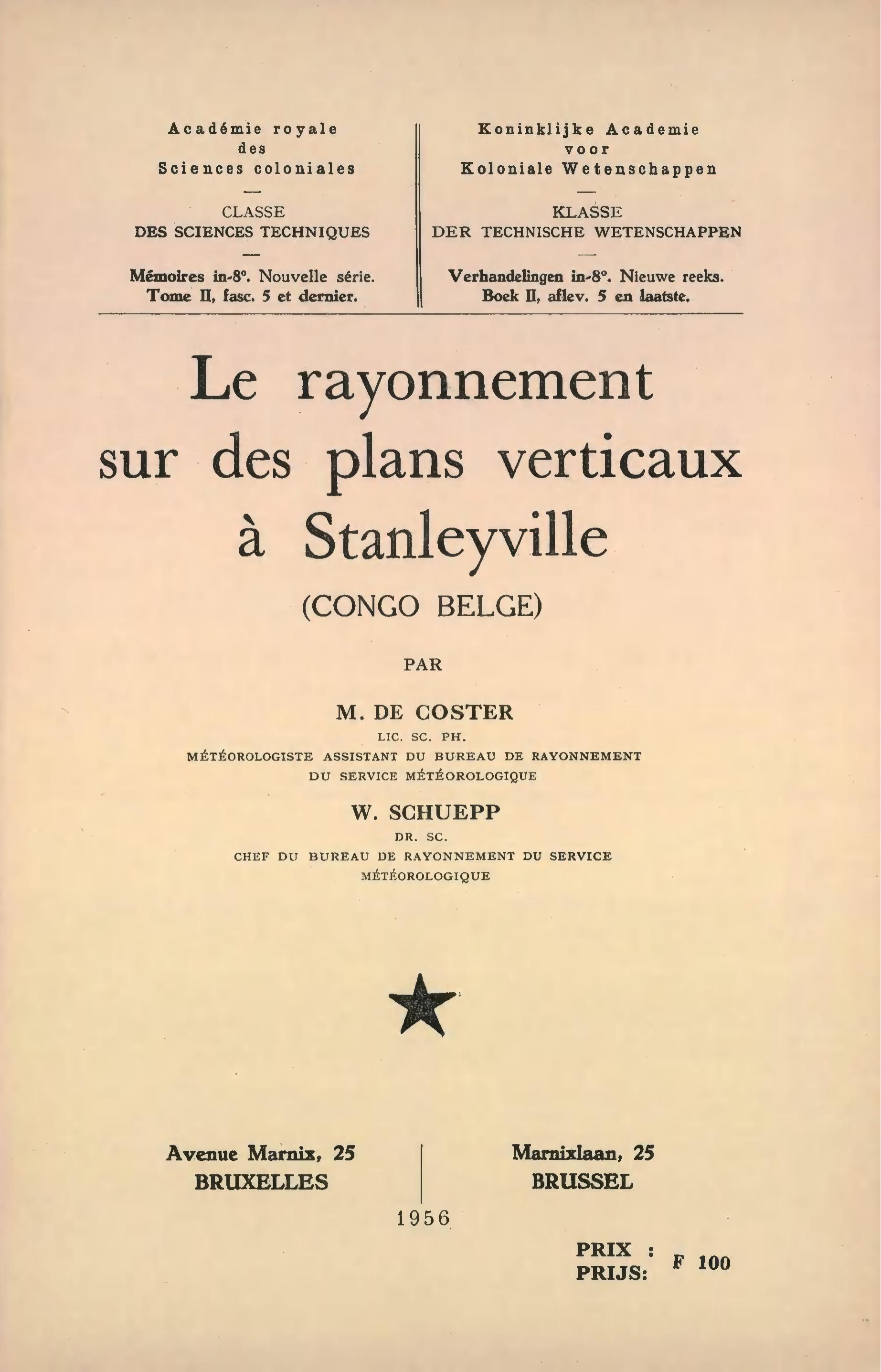 Tec.Sc.(NS) DE COSTER, M.-SCHUEPP, W. Le rayonnement sur des plans verticaux à Stanleyville (Congo belge). -T.II,5 (1956)