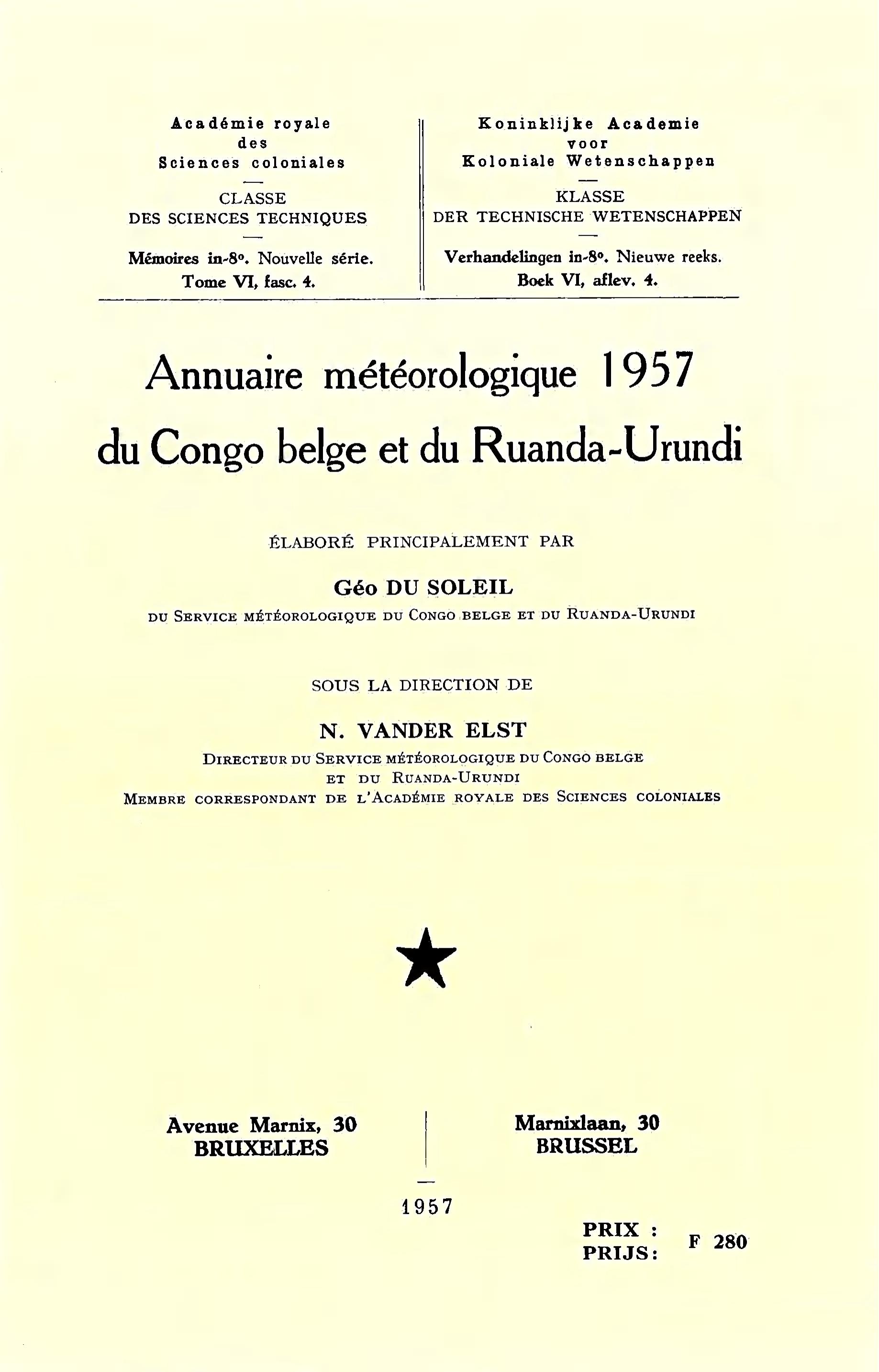 Mémoires de la Classe des Sciences techniques, (N.S.) ARSOM. 1957 T. VI , f. 4: 167 (in-8°)
